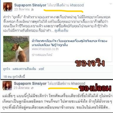 2.ตัวอักษรที่โดนตัดต่อมาใส่ มันไม่ใช่ตัวอักษรที่พิมพ์จากเฟส เพราะเฟสไม่มีตัวพิมพ์หนาและลักษณะอักษรแบบนี้