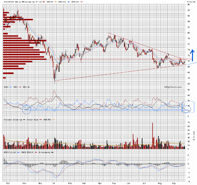จากกราฟ 1 ปี เนื่องจากกำลังของ DMI ได้ oversold มากแล้ว low จะลงก็สุดแล้ว