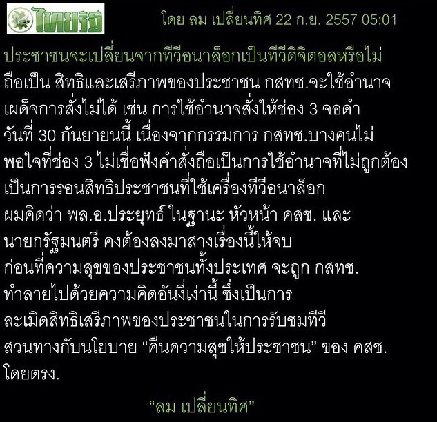 คำสั่ง "ช่อง 3 จอดำ" ในมุมมองของ "ไทยรัฐ"