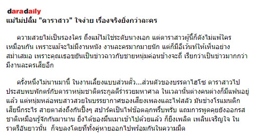 ไปเห็นคอมเม้นนึงในติ๊กต๊อกบอกว่า ก้อย อรัชพร นี่คือ เจนนิเฟอร์อนิสตัน เมืองไทย แต่เท่าที่มองคือไม่ใช่อ่า ชอบเจนนิเฟอร์ อนิสตันมาก ชอบตั้งแต่ตอนคบกับแบรดพิต ถ้าให้ทุกคนเทียบคิดว่าจะเทียบกับดาราบ้านเ