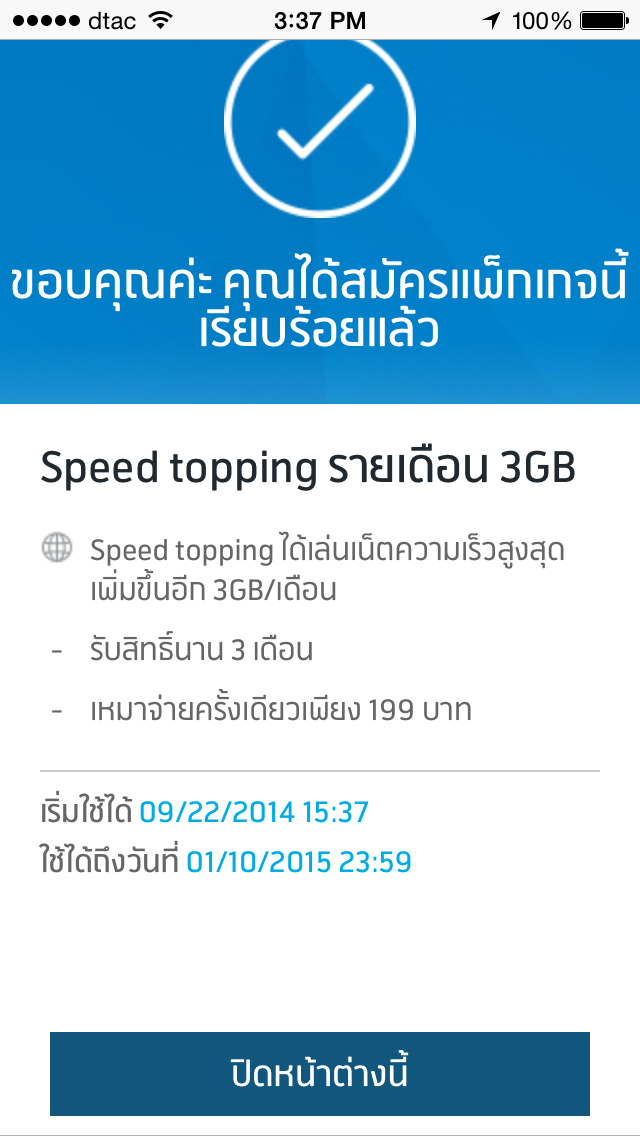สมัคร 3G topping เพิ่ม 3 GB 3 เดือน 199 บาท ทำไมไปหมดตั้งเดือน ตค ปีหน้าแหนะคะ