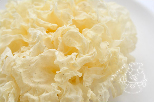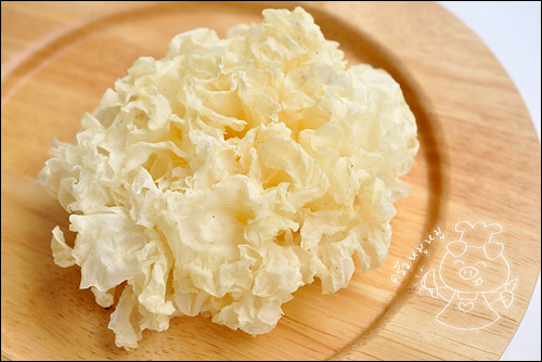 เห็ดหูหนูขาวแห้ง แช่น้ำให้นิ่มเช่นกันค่ะ และซอยเป็นเส้นๆไว้