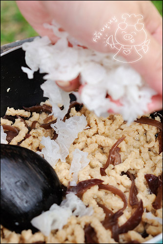 เห็ดหูหนูดำสด ล้างและซอยเป็นเส้นๆไว้ค่ะ ใครมีแบบแห้งก็ใช้ได้ค่ะ แต่นำมาแช่ให้นิ่มเหมือนกัน