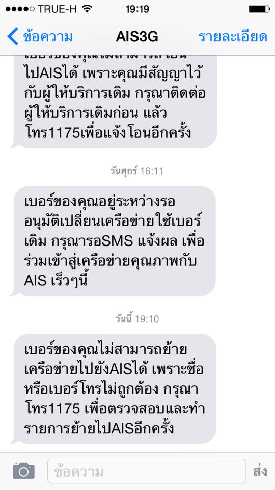 ย้ายค่ายจาก truemove h ไป ais ครั้งนี้ทำไมมันยากมาก ครั้งที่3 แล้ว ตกลงจะยังไงต่อ