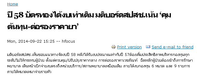 วันนี้มีการประชุมบอร์ด สปสช. ผลการประชุมแทบจะไม่มีอะไรแตกต่างจากรัฐบาลยิ่งลักษณ์เลย