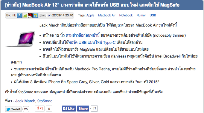 คาดว่า Macbook Air 12" จะบางกว่าเดิม อาจใช้พอร์ต USB แบบใหม่ และเลิกใช้ MagSafe