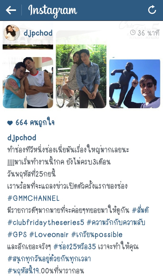 เอามาฝากกันนะครับ แชร์ต่อด้วยก็ดี มีคนบ่นว่าดูไม่ได้เยอะ ทั้งๆที่มันหาดูง่ายมาก ดูสด 1.ช่อง GMM channel ดิจิตอลทีวีช่อง25 เคเบิลและดาวเทียมช่อง35 http://gmmchannel.com 2.ช่อง GTH ON AIR กล่อง GMMZ