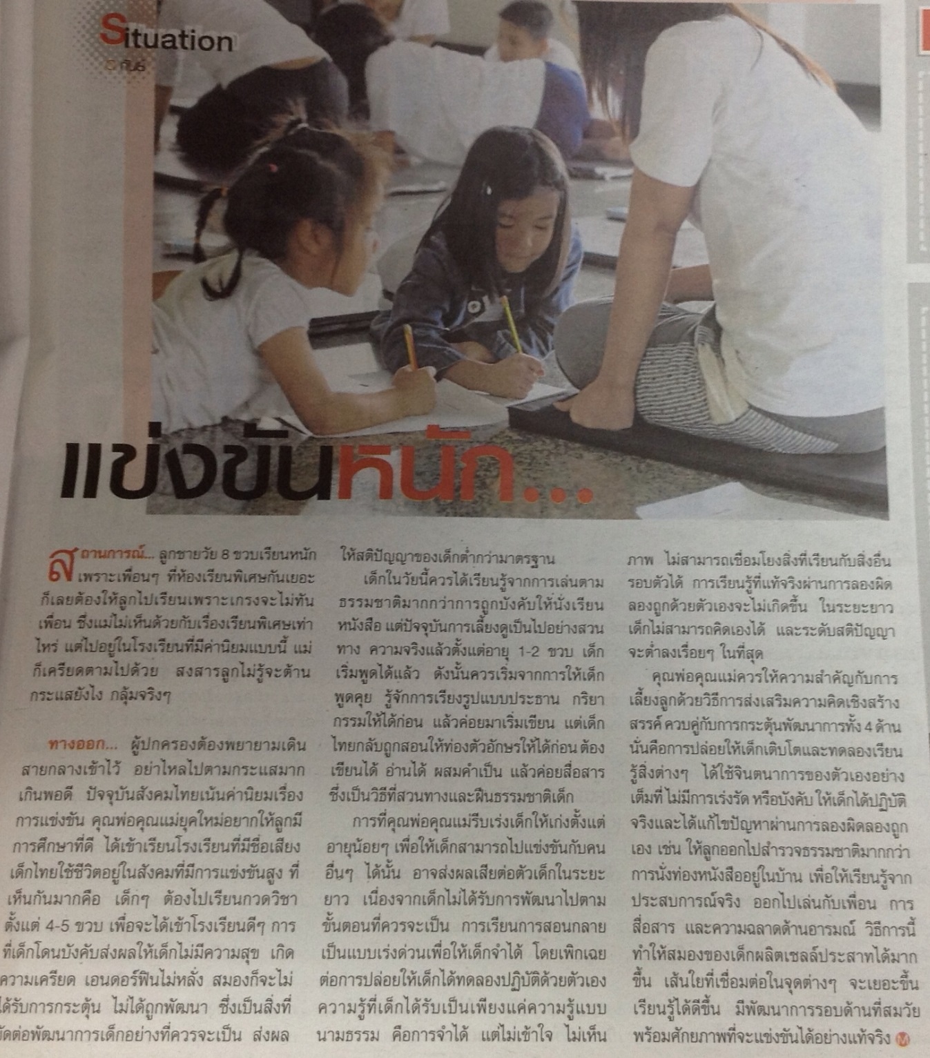 สมัยนี้มีการแข่งขันกันสูงมาก ต่างจากสมัยเมื่อเรายังเด็ก สมัยนี้ผู้ปกครองหลายท่านนิยมส่งลูกเรียนพิเศษกันตั้งแต่อายุอยู่ในวัยอนุบาล สอบถามผลความพอใจ ส่วนมากเกือบร้อยทั้งร้อย(ที่ จขกท. ได้สอบถามปรึกษา) ต