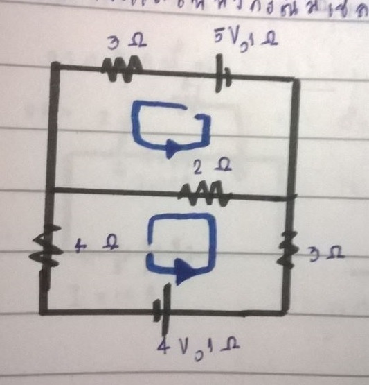 จงหากระแสไฟฟ้าที่ผ่านความต้านทาน 5 โอห์มเป็นกี่แอมแปร์ ***อยากทราบว่าตอบเท่าไหร่แล้วทำยังไงครับ แล้วตรงข้างขวาของ 5 โอห์มนี่มีอะไรหรือป่าวครับที่เป็นเหมือนกระได - - พอดีไม่เคยเจอ ขออภัยที่รูปไม่ชัดด
