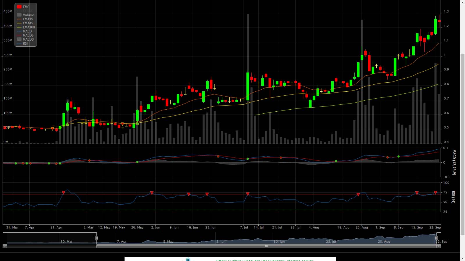 ดังนั้น ควรจับตาพื้นฐานที่เปลี่ยนไป และราคาจะต้องเปลี่ยนแปลง โดยคาดว่าปี 2558 ราคาพื้นฐาน EMC จะอยู่ที่ 2 บาท และลูก EMC-W4 จะเทียบเท่าที่ 1.80 บาท แต่ขณะที่ตัวแม่ติด Cash จึงมองว่าการเข้าเก็บลูกไว้ก่อนไม่ได้มีความเสี่ยง เมื่อมองอนาคตไปไกลระดับนี้ แนวโน้มกราฟให้ที่ตัวแม่ เมื่อใช้กราฟรายเดือนจะเห็นการโค้งตัวขึ้นเป็นรูปถ้วยอย่างชัดเจน มีเป้าหมายที่ 1.50 บาท และ EMC-W4 มีต้านที่ 1 บาท