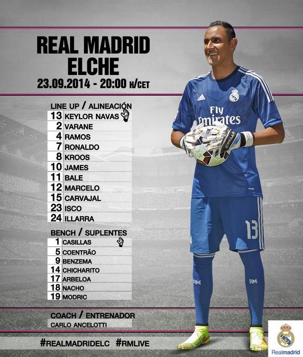 Live : 5th match >> Real Madrid vs Elche นาบาส อิสโก้ อิยาร์ร่าตัวจริง