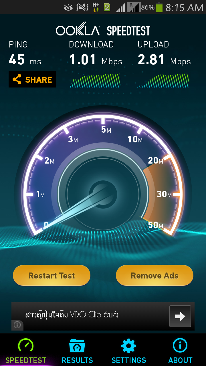 ศรีประไพเพลียมากค่ะกับเน็ต 3g by ais คือสมัครโปร 384kbps วัดสปีดเทสได้เท่าที่เช่ามา ออกจะเกินโปรหน่อยๆด้วยซ้ำ ณ.จุดนี้ศรีประไพปลื้มมาก แต่พอใช้งานจริงกับเอื่อยเป็นเต่าคลาน ถึงแม้ว่าจะขึ้น H+ ก็เหอะ เช