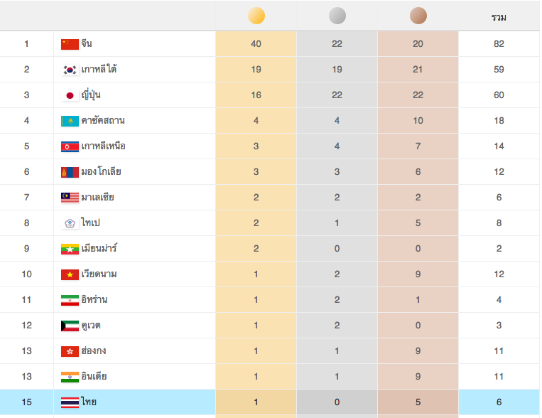 ซึ่งทำให้อันดับเหรียญของเราขยับพุ่งขึ้นมาจากอันดับที่ 22 มาเป็น 15 แล้ว ฮูเร่!!!