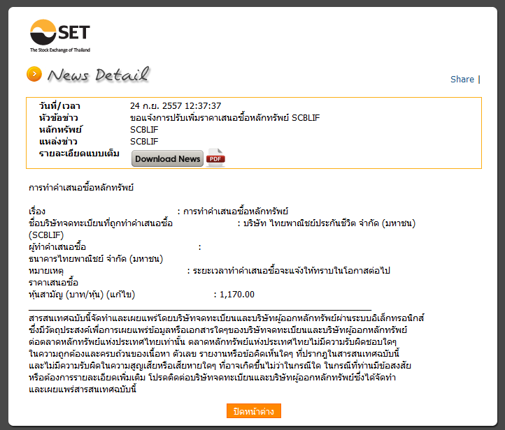 ข่าวดีหรือเปล่า SCBLIF ประกาศซื้อหุ้นคืนที่ 1170 บาท