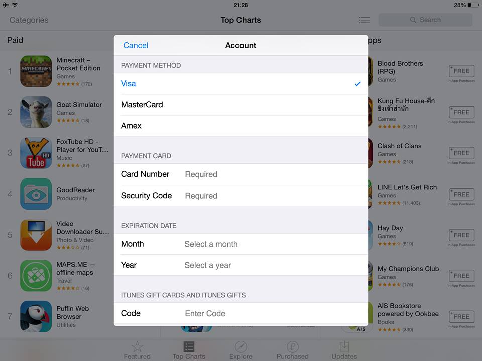คือ ปกติ Apple ID ของผม จะผูกบัตรเครดิตเรียบร้อยทุกอย่าง