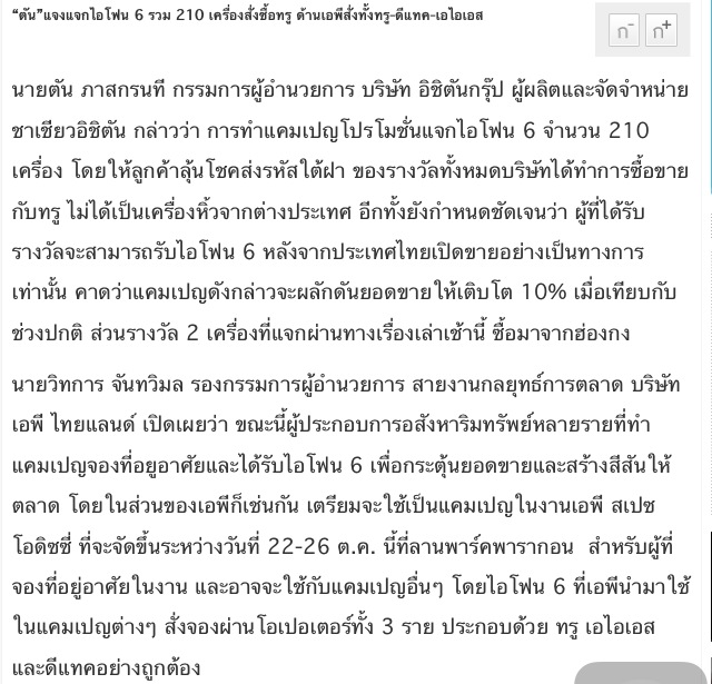 แต่ก็มีคำถามว่าแล้วทำไม “คุณตัน” ที่จัดแคมเปญแจก iPhone 6 มากถึง 210 เครื่องถึงยังสามารถทำได้ ทั้งที่ iPhone 6 ก็ยังไม่มีขายในไทยแต่อย่างใด
