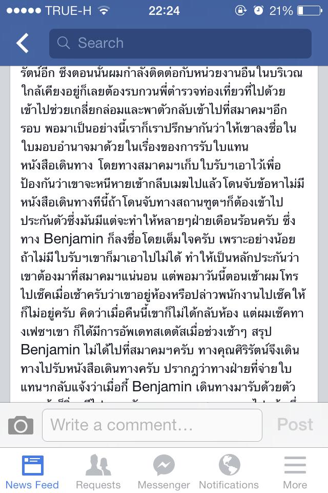 ที่ว่าอ้างทำพาสปอร์ดหาย (หายหรือแกล้งทำหายตอนนี้เริ่มสงสัย) เนื้อหาตามรูปที่เปะเลยครับ เลวมาก