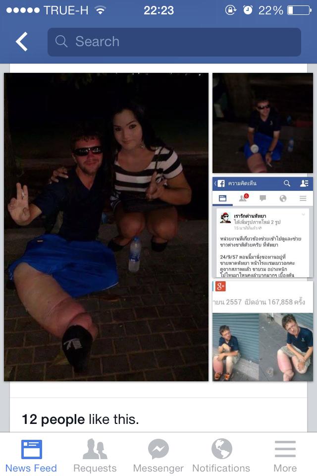 สืบเนื่องจากเมื่ออาทิตย์ก่อนมีการแชร์ ฝรั่งขาบวมขอทานที่ถนนข้าวสาร คงมีคนพอรับรู้ และได้การช่วยเหลือจาก ตม.
