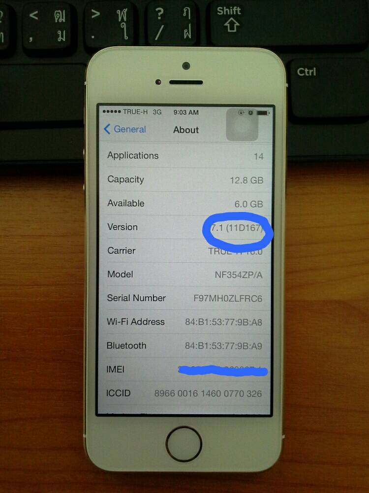 ซึ่งเวอร์ชั่น ios ยังเป็น 7.1 ตอนนี้มันขึ้นให้อัพ ios8 แต่ยังไม่อัพดีกว่า