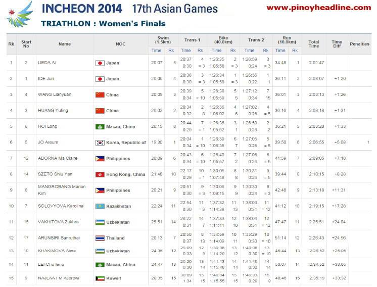 ผลแข่งขัน ไตรกีฬา เอเชียนเกมส์ 2014
