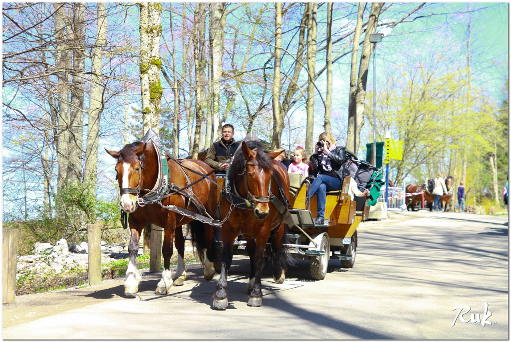 มีแรงแล้วก็ไปลุยกันที่ปราสาทแรกเลยคะ Neuschwanstein Castle เดินขึ้นเขาไปตามทาง ขาลากเหมือนกันคะ แต่อากาศหนาวก็เดินสบายๆ ใครไม่อยากเดินก็มีรถม้าบริการ