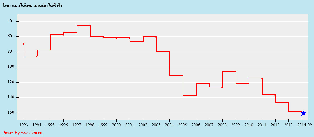 มาดูพัฒนาการอันดับฟุตบอลโลกของประเทศไทย จัดอันดับโดยฟีฟ่า