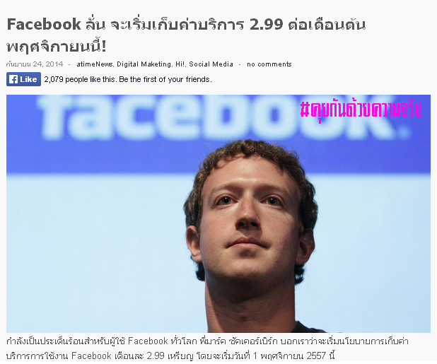 ✿ ตกลง Facebook ที่ว่าจะเริ่มเก็บค่าบริการ 2.99 เหรียญ ต่อเดือน ต้นพฤศจิกายนนี้! ไม่จริงใช่มั้ยครับ ✿