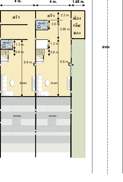 - สามารถค่อยๆ ต่อเติมห้องขวา (หันออกถนน) แบ่งเป็นห้องๆ ให้เช่าเป็นร้านค้าได้ อันนี้ทำให้หนักใจ เพราะไม่รู้จะเอาห้องน้ำไว้ตรงไหนถึงจะเหมาะ