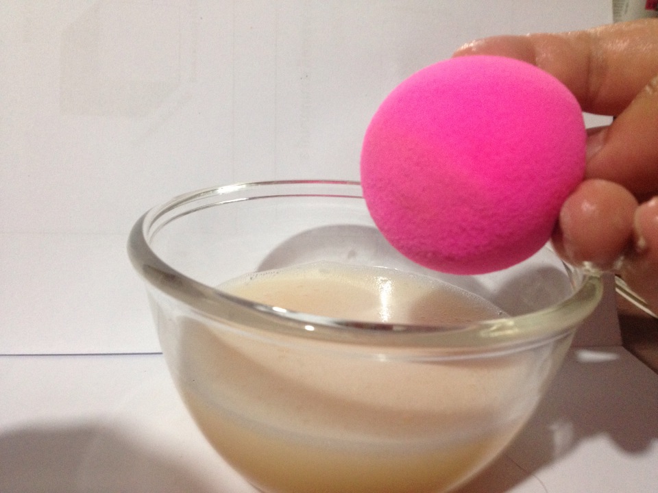 จะเป็นขวดสีขาวเขียนภาษาญี่ปุ่นคะ / สังเกตได้จากฟองน้ำคือเพิ่งตบรองพื้นมา เป็นคราบรองพื้นสกปรก สีเข้มติดชัด