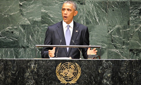 ประมุขสหรัฐฯ กล่าวกับบรรดาผู้นำและผู้แทนจาก 193 ประเทศว่า โลกไม่สามารถพึ่งพิงกฎกติกาที่บัญญัติไว้ในศตวรรษก่อนหน้านี้ได้อีกต่อไป โดยประเด็นที่โอบามาให้ความสำคัญมากที่สุดในการปราศรัยครั้งนี้คือ การเผด็จศึกนักรบญิฮัดกลุ่ม “รัฐอิสลาม” (ไอเอส) ในอิรักและซีเรีย