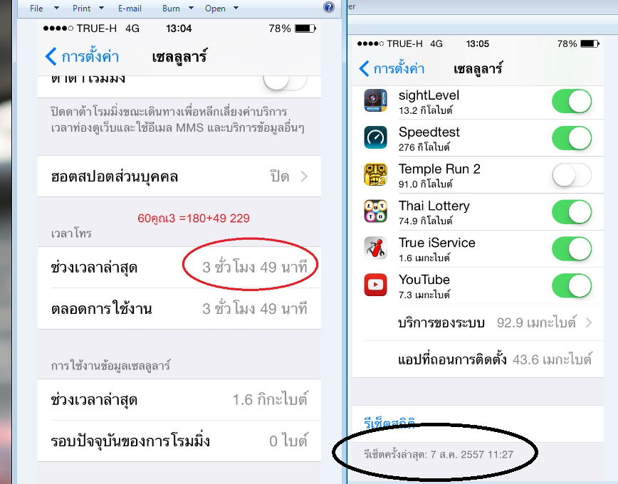 รูปนี้ ผมลองรีเซ็ตแล้วลองโทรดู เครื่องมันก็เช็คการโทรออกตามนั้น อาจจะมีคลาดเครื่อนบ้าง แต่ผมว่ามันคงไม่เกิน100 นาทีหรอกครับ