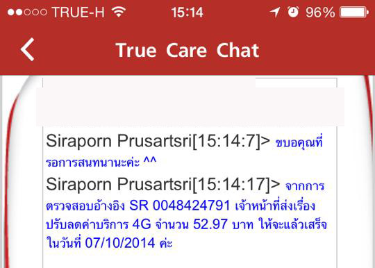 ตอนนี้ใช้แบบรายเดือน ทรูคิดค่าบริการเกิน เนื่องจากคิดค่าบริการ 4G ซึ่งเป็นปกติไม่ได้คิดค่าบริการส่วนนี้ ซึ่งทรูรับเรื่องไว้ เลขที่ SR 0048424791