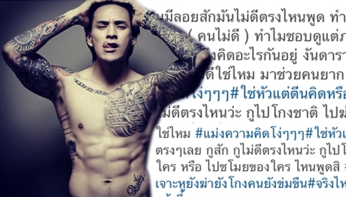 ผมเห็นก็คิดว่าตัดต่อแน่ๆ คนปกติไม่มีหรอกที่จะเอาคำหยาบ คำด่ามาสักตัวเอง ที่จะสักมีแต่อะไรดีๆ เจ๋งๆ หรือยันต์คงกระพันไรงี้ เอาคำด่ามาสักให้ตัวเองเห็นทุกวัน ผมว่าไม่มีอะ ยิ่งเป็นลูกหลานคนวงการบันเทิง คง