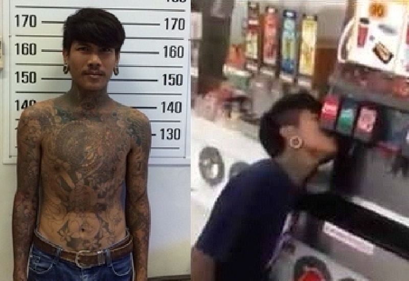 ...รวบแล้ว หนุ่มคะนองให้ปากดูดเครื่องกดน้ำอัดลมในเซเว่น !...