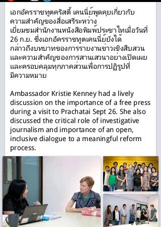 ท่านทูตคริสตี้เยี่ยมชมสำนักงานหนังสือพิมพ์ประชาไทย