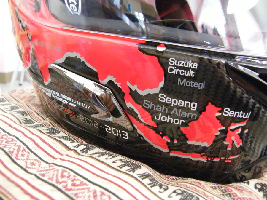 ด้านหลังหมวกมีสปอยเลอร์ สามารถปรับระดับได้ น่าจะช่วยในเรื่องแอร์โร่ไดนามิก อะไรก็ว่ากันไป สำหรับผมเอาไว้ปรับแก้เหงาเล่น