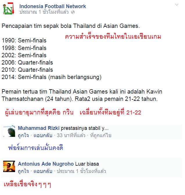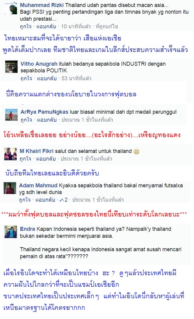 ลองมาดู คอมเมนต์เพจฟุตบอลอินโด หลังจากไทยเข้ารอบรองกันครับ (แปลแบบเดาๆ)