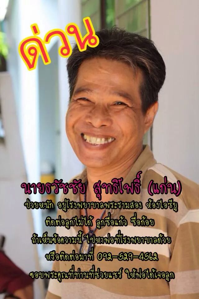 อยากจะรบกวนเพื่อนชาวพันทิพค่ะ เนื่องจากคุณน้าท่านเป็นญาติของเพื่อน ซึ่งแกได้เสียชีวิตไปแล้ว ตัวคุณน้าท่านได้หย้าร้างจากภรรยาไปนานทำให้ขาดการติดต่อ ซึ่งคุณน้าท่านมีลูกสาวอยู่สองคน ชื่อน้องแก้วและน้องก้อย แต่ด้วยความที่เราไม่ทราบชื่อจริง ไม่มีเบอร์ติดต่อ ไม่รู้ว่าหาหาลูกและภรรยาได้ที่ไหน ทางญาติๆก็พยายามตามหาลูกสาวและภรรยาของคุณน้า อยากให้ลูกๆมากราบเคารพศพคุณพ่อเป็นครั้งสุดท้าย