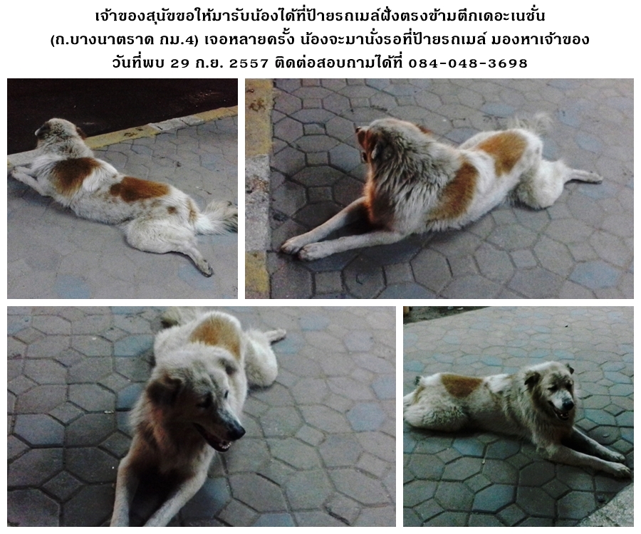 ขอเชิญเจ้าของสุนัข มารับสุนัขได้ที่ป้ายรถเมล์ฝั่งตรงข้ามตึกเดอะเนชั่น (ถนนบางนาตราด กม.4)