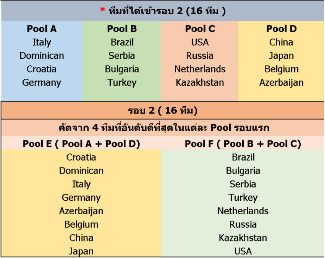สรุปทีมที่ได้เข้ารอบ 2 (16 ทีมสุดท้าย) อย่างเป็นทางการของ FIVB Women's Volleyball World Championship 2014
