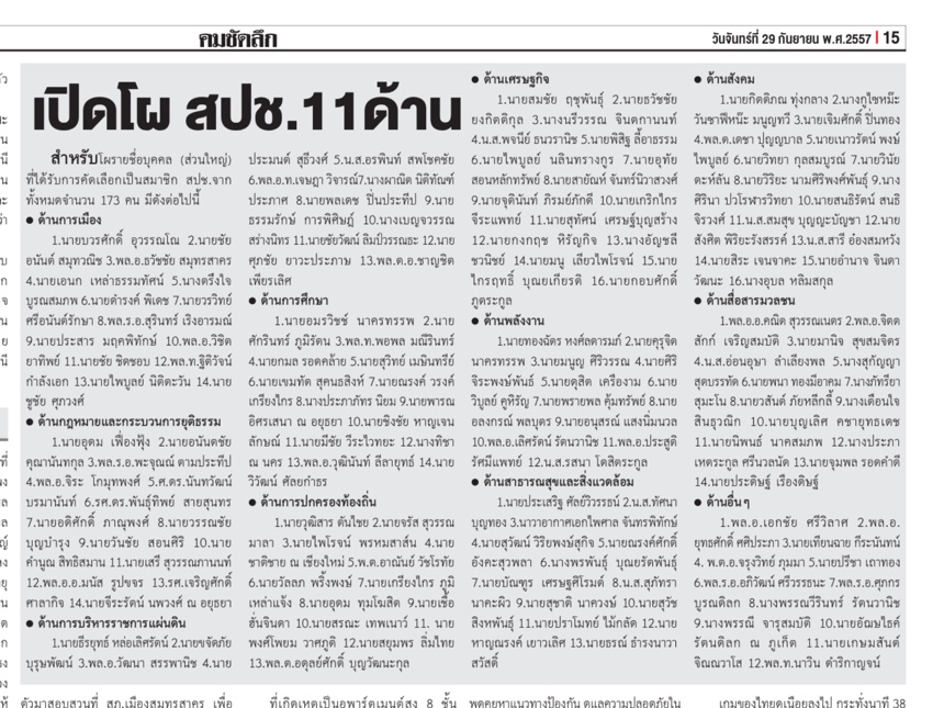 เปิดโผสมาชิกสภาปฏิรูปแห่งชาติ 11 ด้าน