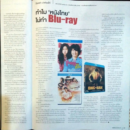 แต่ผมมั่นใจว่ามีผู้อ่านแค่ส่วนน้อย ที่มีเครื่องเล่นแผ่นบลูเรย์ประจำการอยู่ที่บ้านของท่าน และเชื่อว่า ถึงแม้จะมีเครื่องเล่นแผ่นบลูเรย์ แต่ก็ยากมากที่จะได้ดูบลูเรย์ “หนังไทย”