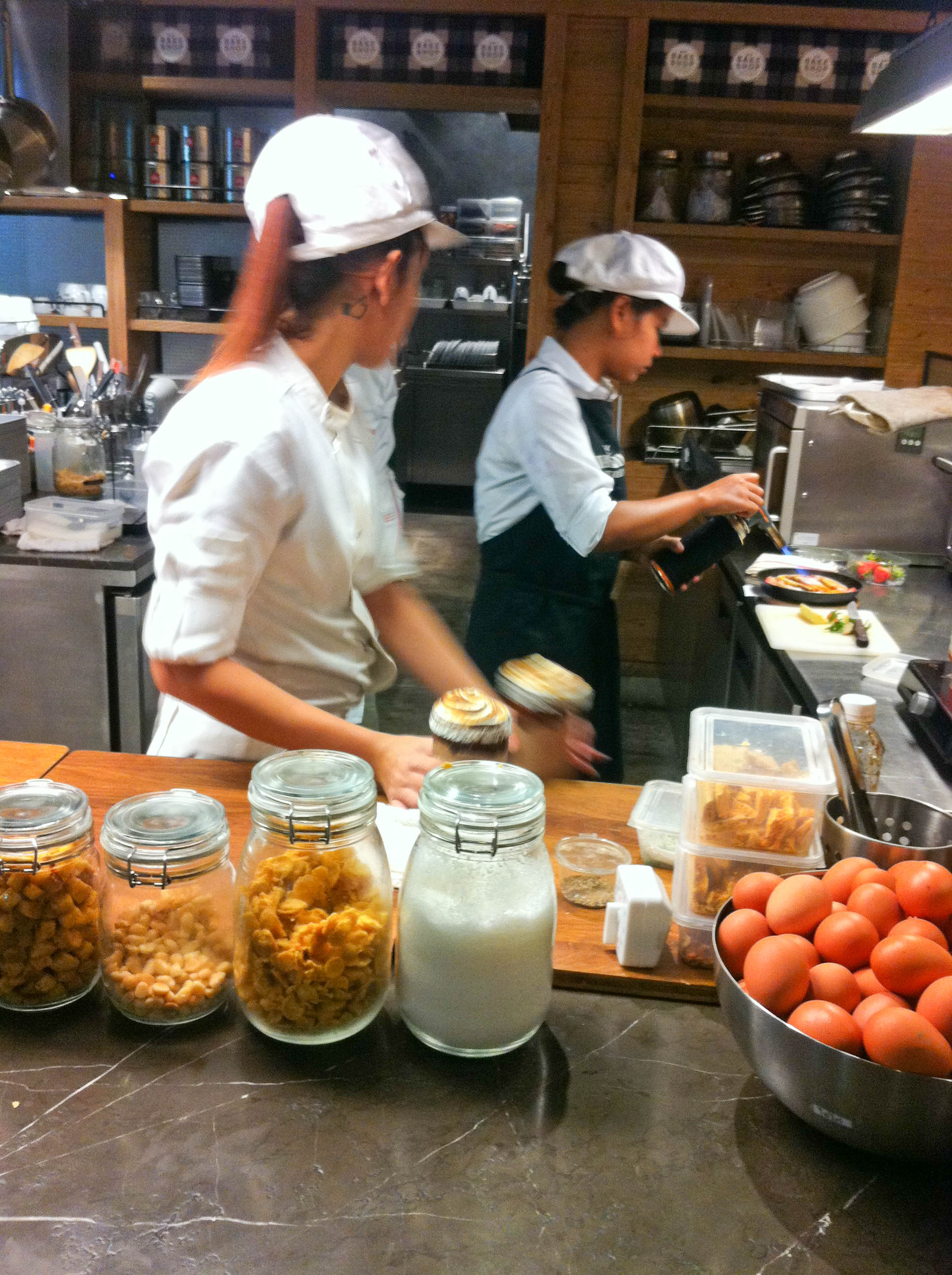 พี่ๆน่ารักคะให้คำแนะนำดี ที่นี่เป็นครัว Open นะคะ เห็นหมดเลยว่าเขาทำอะไรกัน แต่ต้องขอโทษด้วยนะคะ ถ่ายภาพมาไม่ชัด