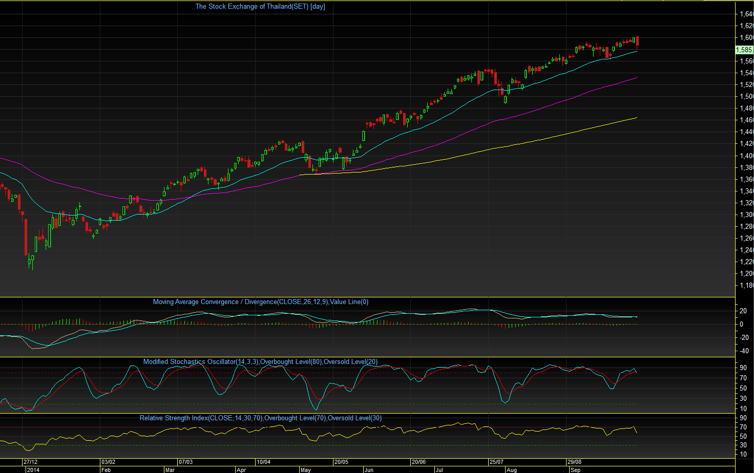 ปิดตัวไปที่ระดับ 1585 จุด -14.37 จุด วันนี้มาติดตามกันต่อว่า ดัชนีจะสามารถฟื้นตัวขึ้นไปได้หรือไม่