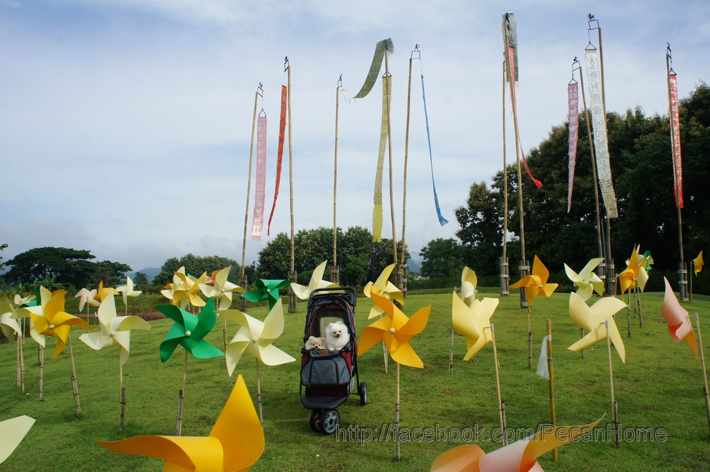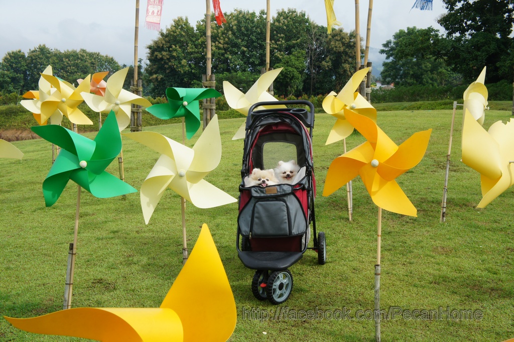 สองสาวเบิกบานใจท่ามกลาง กังหันลม ตุง สวยงาม