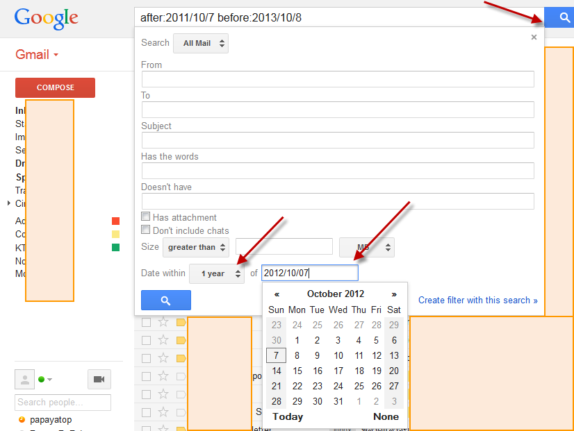 ต้องการหาเมลล์ ปีเก่า ๆ เช่น ปี 2551