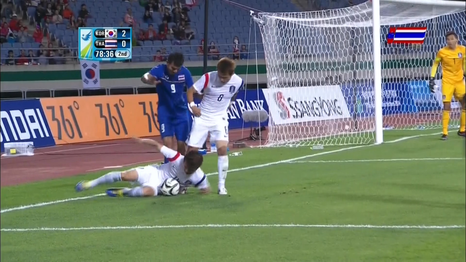 แหม่...หลายลูกแล้วนะครัช จังหวะเสียบ หงายสตั๊ดใส่ขนาดนั้น จังหวะเข้าแรงๆ ไม่มีภาพช้าให้ดู สงสัยเทคโนโลยีการถ่ายทอดสดของเกาหลีใต้ยังไม่พัฒนา ฝีมือชื่อชั้นก็ดีกว่า ไม่น่ามา "๊กี่โมง" กันแบบนี