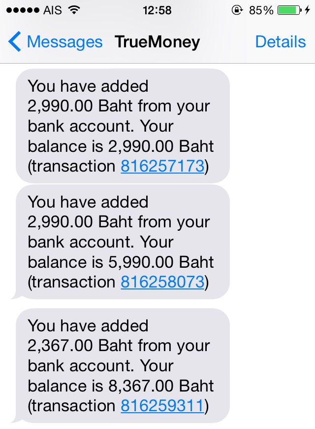 ผมก็โทรไปหา Call Center Krungsri เขาก็แจ้งว่ามีการเติมเงิน True Money (ผมก็งงเติมได้ไงทั้งรายการนั้นทำไม่สำเร็จ) เขาให้ผมติดต่อ True Money โดยตรง พอวางเสร็จผมก็โทรหา True Money เลย