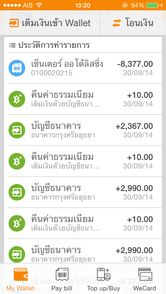 ปกติผมจะจ่ายงวดรถยนต์จะจ่ายผ่าน True Money ตลอดสะดวกสบายดี แต่มาสิ้นเดือนนี้ ก.ย. 2557 ผมก็จ่ายงวดรถตามปกติ