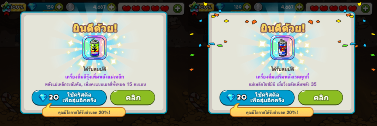 สังเกตว่า ถ้าเล่นแบบไม่ซื้อเพชร เวลาสุ่มมักได้ของดีๆ